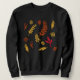 Folhas de abstrato modernas e formas geométricas são combinadas neste design de outono vermelho e amarelo.