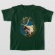 Uma pintura de alce-touro com alce-de-vaca dentro de um círculo azul que é enquadrada por um galho-árvore coberto por folhas verdes. Imagem Copyright ©2022 Kimberly J Tilley. zazzle.com/store/kimberlyjt