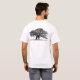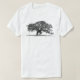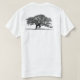 Foto preta e branca de um belo carvalho na frente e atrás de sua camisa.