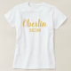 Mostre orgulho para o seu Obie com esta camiseta mãe Oberlin, com um roteiro amarelo numa camisa vermelha.