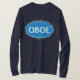 Texto de oboé padrão em um oval decorativo azul é um design de presente único para músicos de cordas, professores de música escolar e estudantes em orquestras e conjuntos de cordas.