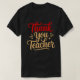 Esta imagem apresenta uma camiseta preta com o texto "Obrigado" escrito em um script vermelho fluente no topo. Abaixo, "Você" está em um roteiro azul-claro menor, flanqueado por estímulos decorativos. A palavra "Professor" está no fundo de um roteiro maior, de cor castanha, com um sublinhado curvo.