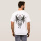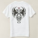 An elegant and symmetrical tribal crest featuring twin bat wings with a detailed, leathery obsidian texture. The design is centered around an intricate, interwoven totem composed of sharp, curved linework. At the very top, two subtle crimson accents provide a striking pop of color against the dark, weathered stone and metal finish.