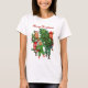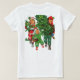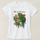 Camisa de Natal com três crianças... levando a árvore de Natal para casa através da neve. Todos estão sorrindo e felizes com esta divertida apresentação.