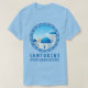 Oia Blue Dome, Santorini dentro de um círculo de padrão grego circula camiseta azul de verão dos homens. Esta design da ilha grega é só para você se você quiser curtir enquanto estiver em Santorini. Esta design também apresenta uma cena de mar com gaivotas voadoras.