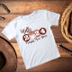 Camiseta branca fascinável com texto "Feliz ano novo" Feliz ano novo com texto artístico a preto para toda a família.