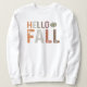 Este design do outono dá as boas-vindas à estação do outono com a frase "Olá outono". As palavras são dispostas em um layout simples, mas visualmente atraente, com "Olá" colocado acima de "Queda". Cada letra da frase é apresentada em uma fonte arrojada, achatada com uma textura levemente amaldiçoada, dando a ela um olhar rústico e metido que complementa o tema do outono.