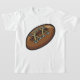 Uma velha bola de rúguebi marrom amarrada com cadarços. Esta design parece realmente eficaz nesta camiseta