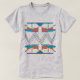Em destaque está uma combinação abstrato de formas e linhas na turquesa orangem, e azul-lacre, criando um padrão horizontal com linhas ziguezaguis, influenciada pelo estilo artístico nativo americano/sudoeste. Foto aqui em uma camiseta de cinza de aço leve, com outras cores e estilos disponíveis. O design projeta uma qualidade superior, colorida e artística para uma adição versátil e moderna ao seu visto casual e diário (seja em casa, socializando com amigos, praticando esportes ou correndo sobre a cidade). A design de camisa como "arte 'vestível'" também expressa um sentido de seu estilo individualizado, contribuindo para o sentimento de ser "unido" e criativo em suas escolhas pessoais de guarda-roupa.