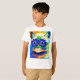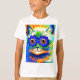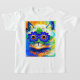 Camiseta com pintura de animais de Louis Wain: Olhos de Flor de Gato (1860-1939). Um gato arco-íris sorri muito. Flores azuis cobrir seus olhos. Um presente maravilhoso para amantes de gatos e arte inglesa.
