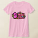 A Olivia conhecida no estilo funky, artística similar ao vitral. Em rosa vibrantes, em salmões, em fucsia com bocados do verde limão e em azul. Acentos do coração e da flor.