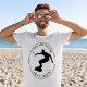 As ondas estão chamando e eu tenho que ir surf! Esta camiseta gráfica monocromática minimalista apresenta uma silhueta de surfista, perfeita para uma roupa casual de verão. Aproveite as férias de verão da sua família e pegue algumas ondas no estilo!