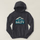 Ondas gigantes com cristas brancas rolam em direção à praia neste gráfico costeiro em estilo retrô. O texto SALGADO em creme vintage contrasta fortemente com o oceano azul turquesa. Feito para os amantes da praia, surfistas, buscadores de sol e qualquer pessoa que viva no tempo da ilha. Este capuz de moletom é uma ótima maneira de adicionar vibrações à beira-mar ao seu look. | Dica: Para cores vibrantes, recomendamos impressão vívida para a maioria das roupas. Para roupas brancas, selecione impressão clássica.