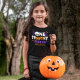 Diseño divertido para familias de Halloween, con colores purpura y naranja con la "Frase ONE SPOOKY SISTER" con el nombre de papa personalizable y con imagenes de calabazas y murcielagos y esqueletos de halloween. Este diseño es ideal para fiestas familiares de halloween o simplemente para lucir genial en las fiestas de Halloween. No lo piense y adquiera las suyas ahora.