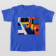 Chá de criança numa ilustração retrormoderna de ônibus e carros em cores primárias brilhantes