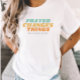 Esta oração inspiradora muda as coisas/rezam sem calar a camiseta cristã é baseada na escritura em 1 de Salónica 5:16-18, "Alegre-se sempre, reze sem parar, dê obrigados em todas as circunstâncias; pois esta é a vontade de Deus em Jesus Cristo para você." Dimensionamento: Revise o gráfico de tamanho da sua ordem:). Recomendamos que você pegue uma de suas camisetas de ajuste favoritas, coloque-a na posição plana, meça-a e compare-a com o gráfico de dimensionamento. Ame o design, mas quer vê-lo em um produto diferente que ainda não está disponível? - Clique em Transfer this design" (Transferir este para qualquer outro produto no mercado do Zazzle)!