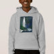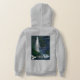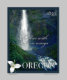 Uma pintura digital de uma queda d'água encontrada ao longo da trilha de alternância de Multnomah Falls na Zona Cênnica da Garganta do Rio Columbia, em Oregon. O número branco no canto superior é o ano em que Oregon se tornou um estado. A inscrição branca no centro da pintura, "Ela voa com suas próprias asas", é o lema do estado. Na parte inferior da pintura está uma flor de trilium branca ao lado de Oregon, em letras brancas. Uma simples borda azul escura termina a pintura. Imagem Copyright ©2023 Kimberly J Tilley.