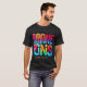 O design de camiseta "Arrange Rides" apresenta a frase em letras em negrito, multicoloridas, organizadas de forma lúdica e dinâmica. As cores são vibrantes e atraentes para os olhos, fazer o design. O estilo geral é moderno e enérgico, perfeito para uma empresa de compartilhamento de traços ou qualquer um que ama a viagem.