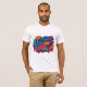 Esta design de camiseta apresenta a frase "Orgulho de ser Americano" em letras corajosas e multicoloridas. Cada letra é uma matiz vibrante diferente, criando um efeito lúdico e atraente. O fundo é um padrão abstrato dinâmico que complementa o texto colorido, fazer-o uma declaração ousada e patriótica.