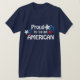 Mostre seu orgulho patriótico com esta design de camisa com estrelas vermelhas, brancas e azuis e as palavras, "Orgulhoso de ser americano". Perfeito para as comemorações do 4º Dia da Independência, ou qualquer hora que você quiser celebrar os EUA.
