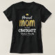 Camiseta moderna da família de cerimônias de graduação, com formandos de ouro, o ditado "mãe orgulhosa do formando", seu nome, local de estudo e ano de aula.