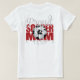 Camiseta com a Mãe de Futebol Orgulhoso na parte de trás em letras vermelhas; personalizada na área do bolso da frente com o nome da mãe ou da criança que começa com a letra "E".