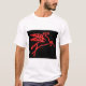 Esta camisa caracteriza uma foto de um néon Pegasus que gire em uma torre que se assemelha a uma plataforma petrolífera em Dallas do centro