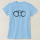 o t-shirt dos azuis marinhos com algemas e as "bobinas amam-me" na parte anterior