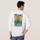 A design de camiseta "Sonhos Crescem Aqui" apresenta uma cena serena e elevadora onde flores e plantas delicadas florescem em torno do texto, simbolizando o crescimento e a aspiração. As palavras "Dreams Grow Here" são escritas em uma elegante e fluente fonte, misturando-se perfeitamente com a natureza envolvente. As cores são suaves e suaves — verdes suaves, azuis e pastéis — evocando uma atmosfera calma e esperançosa. A design geral se sente orgânica e inspiradora, como um jardim de possibilidades, convidando o usuário a alimentar seus sonhos.
