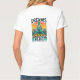 A design da camiseta "Dreams Grow Here" apresenta uma ilustração vibrante de uma árvore florescente, simbolizando o crescimento e o potencial. Cada ramo está cheio de flores e folhas coloridas, representando sonhos, aspirações e realizações pessoais. As raízes da árvore são intricadamente detalhadas, embasando a design e evocando a ideia de que fundações fortes levam ao crescimento do excelente. As palavras "Sonhos Crescem Aqui" estão tecidas nos ramos, dando a impressão de que fazem parte do crescimento natural da árvore. O sentimento geral é esperançoso e inspirador, fazer perfeito para quem acredita em alimentar seus sonhos.