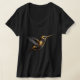 Camisa-T preta de beija-flor Ouro. Um beija-flor com ouro e prata abde algumas marcas pretas voando da esquerda para a direita. Belo animal da Costa Rica e os pássaros mais pequenos, mas não os mais fracos.