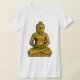 Um buda, não importa se você é religioso ou não, é fascinante e faz uma design interessante. Este é de um ouro buddha sentado numa pose tradicional de buda. Este design ouro de Buda parece excelente nesta camiseta feminina. Perfeito para si mesmo ou como presente