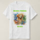 Um Ouro orgulhoso, cão de sempre, está com um troféu adornado com estrelas cintilantes, simbolizando vitória e excelência. Celebrando o Ouro Nacional de Porco Purebred Day