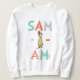 Não bata até experimentar, pode gostar! OVOS VERDES E HAM é uma história clássica do Dr. Seuss onde Sam-I-Am tenta fazer seu amigo experimentar alguns ovos verdes e presunto, e ele realmente acaba os amando. Olha o Sam-I-Estou segurando uma placa com o nome dele.