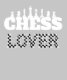 Esta design de xadrez criativa mostra a palavra "xadrez" erguida por peças brancas e a palavra "Lover" preenchida com um padrão de tabuleiro de xadrez. Perfeito para amantes do xadrez e jogadores que admiram estratégia, intelecto e a beleza do jogo.