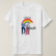 camiseta orgulho gay com arco-íris, nuvens, dois homens ilustrados, e um jovem rapaz. Obrigados para Hungryjpeg e Creative Fabrica para alguns dos elementos do design.