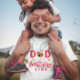 Um bom tema de ladybug para a festa de aniversário do seu filho. Ilustração de inseto vermelho e rosa com flores silvestres. O texto diz "pai da aniversariante".