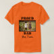T-shirt moderna do PAI PROUD com FOTO PERSONALIZÁVEL. O texto diz PAI PROUD YES I AM, que é personalizável, para que você possa mudar conforme necessário, e carregar uma foto em formato igual de seu ente querido.