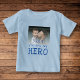 Pai que você seja meu Pai de Tipografia Herói Foto Bebê T-Shirt. O texto está em fontes simples e azuis desenhadas à mão. Adicione sua foto. Você pode transformar pai em pai, papai, Papá, Papanicolau...