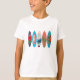 Um design colorido de pranchas de surfe com diferentes tipos de arte de prancha. Ilustrações visuais de peixes tropicais, praia, flores de hibisco e palmeiras criam uma mistura eclética de pranchas coloridas. Design de pranchas ideais para quem adora surfar, praia, presentes coloridos na praia e décor.