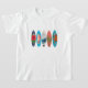 Um design colorido de pranchas de surfe com diferentes tipos de arte de prancha. Ilustrações visuais de peixes tropicais, praia, flores de hibisco e palmeiras criam uma mistura eclética de pranchas coloridas. Design de pranchas ideais para quem adora surfar, praia, presentes coloridos na praia e décor.