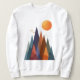 Um grupo de montanhas com um sol no fundo, arte vetorial, arte geométrica da abstrato, papel de parede vertical, tema verde e laranja, luz lua no fundo superior, cores da terra.