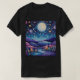 T-shirt com uma bela ilustração. Vírus caprichoso e fantasioso. Uma lua grande brilhando com estrelas ao redor. Passando por uma bela paisagem de árvores, montanhas e um rio sinuoso. Incrível vibração mística mágica.