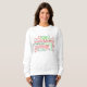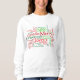 Camiseta básica de manga longa branca com uma imagem de palavras de Natal vermelhas e verdes. Veja toda a coleção de Roupa de Feriados na seção FAVORITOS PARA FESTAS.