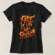 Uma ilustração digital vibrante da frase Disparar Meu Amigo! com cada letra feita em tons estilizados, cor de laranja e vermelho.