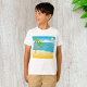 Uma vista cênica de uma praia de palmeiras com um sol brilhante. Esta design parece realmente eficaz nesta camiseta