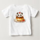 An adorable illustration of a chubby panda sitting inside a caramel-topped pudding. The panda looks sweet with a cherry on its head and holds a tiny spoon while smiling happily. Beside the pudding dish are dollops of whipped cream and a couple of strawberries, creating a deliciously cute scene.