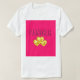 Meu design apresenta um fundo rosa vibrante com texto em uma mistura de rosa e preto, complementado por bordas brancas. Três corações de ouro na parte inferior são conectados por cordas finas de ouro, adicionando um toque de elegância à composição geral.