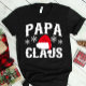 Comemore a temporada de festas em estilo com esta camiseta "Papa Claus", com um lindo chapéu de Papai Noel e design de flocos de neve. Perfeito para pais que trazem alegria natalícia, esta camisa é uma adição divertida e festiva a qualquer reunião de Natal ou celebração de Natal familiar. Ideal como presente para pais, avós, ou qualquer "Papa Claus" especial em sua vida, esta camiseta certamente difunde espírito de feriado.
