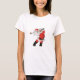 Papai Noel que joga o golfe com seu equipamento branco e vermelho e um grande nariz grande. Com uma madeira cinco.